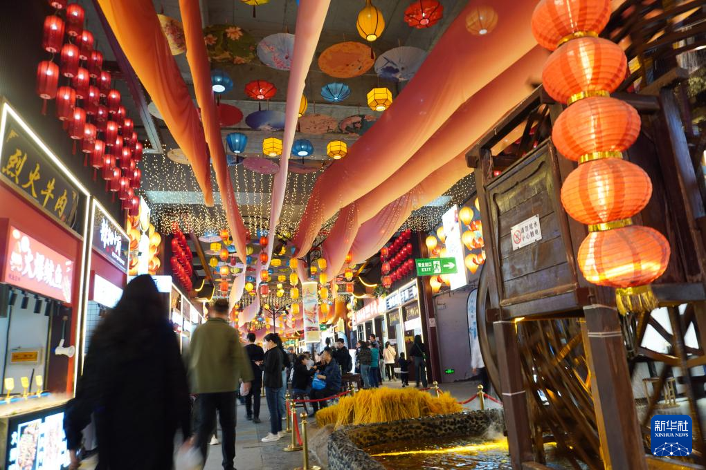 这是4月26日在兰州市城关区拍摄的黄河食渡文旅美食街内景象。新华社记者 马希平 摄