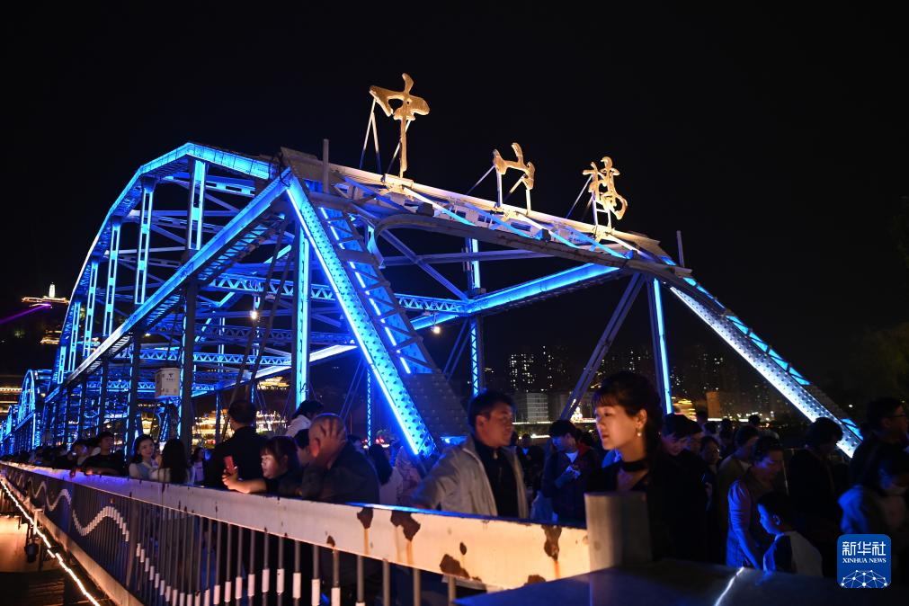 4月26日,游客在位于兰州市城关区的兰州黄河铁桥中山桥参观游览。新华社记者 范培珅 摄