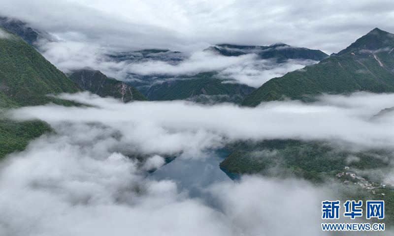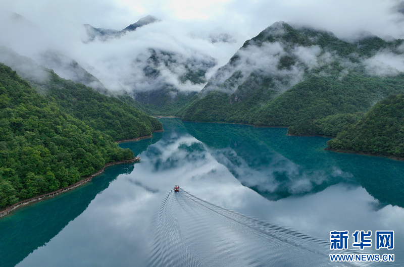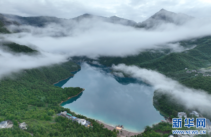 一场降雨过后,文县天池烟雨笼罩、云雾缭绕,翠绿的山峦、碧绿的湖水,相互辉映,宛若仙境。文县天池位于甘肃省陇南市文县以北约100公里处的崇山峻岭之中,海拔约2400米,为高山湖泊。新华网发(冉创昌 摄)