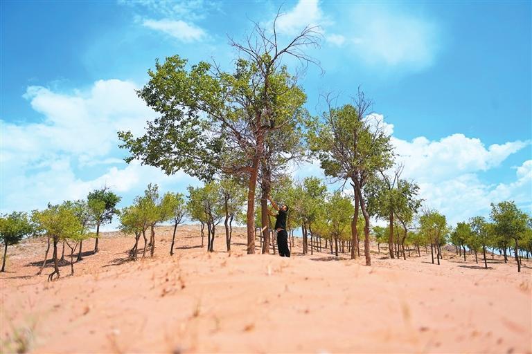 沙地中的树木逐年增多。