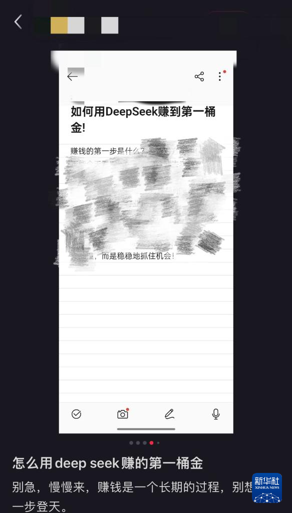 某社交平台上博主分享“如何用DeepSeek赚第一桶金”。(网络截图)