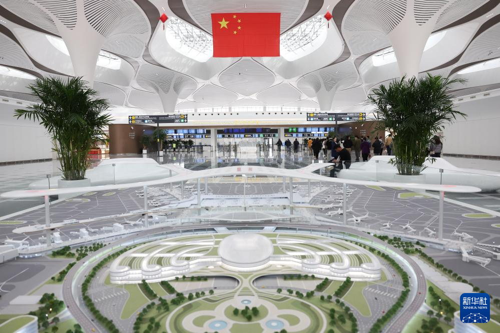 这是在兰州中川国际机场T3航站楼出发大厅拍摄的T3航站楼和综合交通中心沙盘模型(3月11日摄)。新华社记者 陈斌 摄