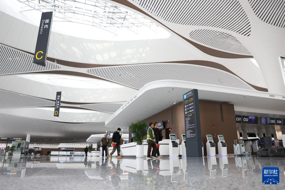 3月11日,工作人员从兰州中川国际机场T3航站楼出发大厅内走过。新华社记者 陈斌 摄
