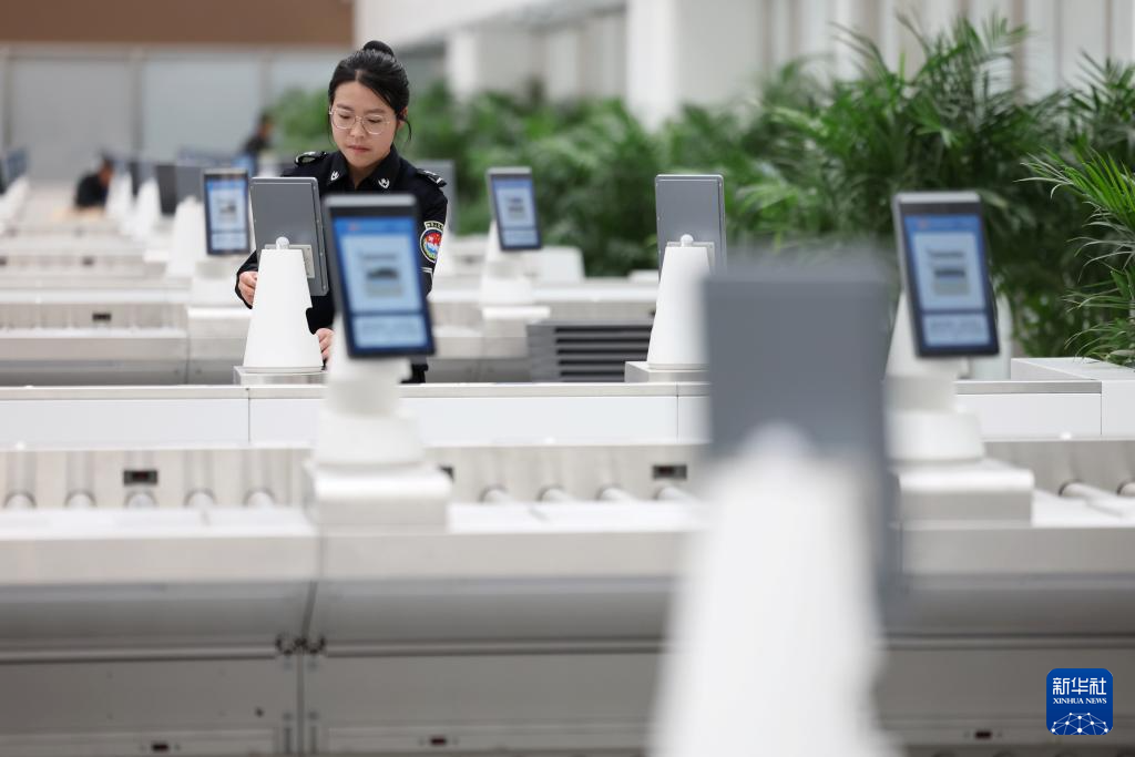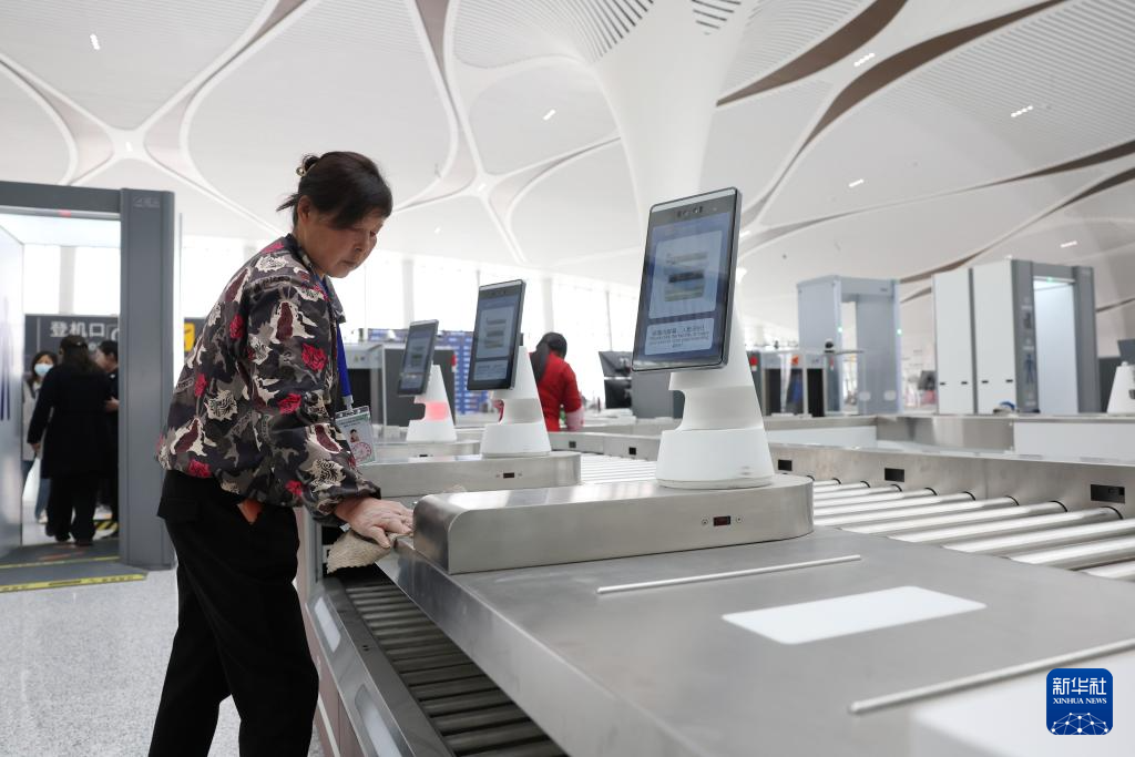 3月11日,兰州中川国际机场安检员姚宝珍在T3航站楼安检区域检查设备运行情况。新华社记者 陈斌 摄