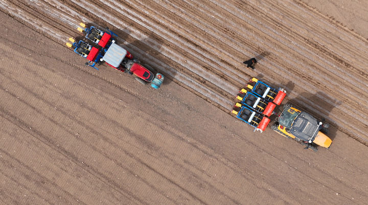 为了降低成本、统一标准,五个墩村的村集体经济公司还为农户提供深松、犁地、铺膜等机械租赁服务,最新上架的全程复式导航播种机能一次完成施肥、铺膜、铺滴灌带、播种。
