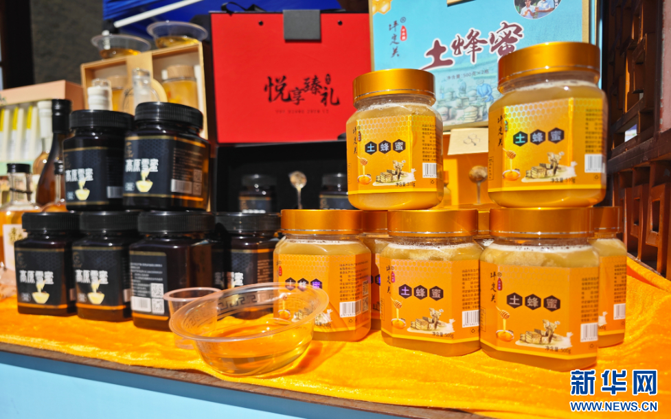 活动现场展示的蜂蜜。新华网发(童张伟 摄)
