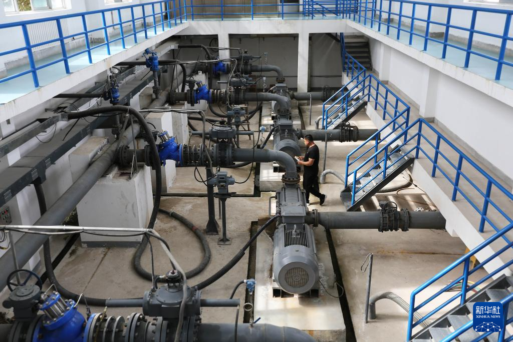 5月26日,工作人员在甘肃省定西市内官水厂泵站检查供水设备。新华社发(王克贤 摄)