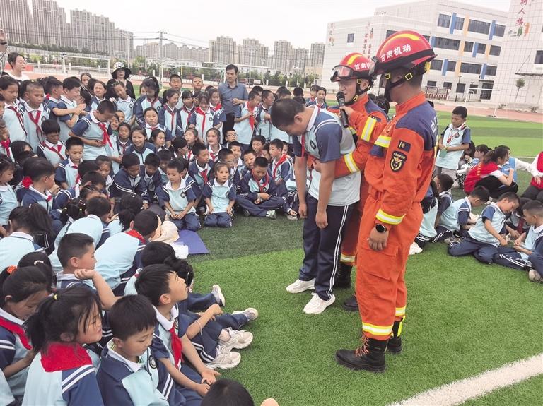 互动过程中,特别设置了“家庭安全延伸课堂”。学生们积极参与,踊跃提问,与消防人员进行互动交流,深刻体会到了排除生活中消防隐患的重要性。学生雷效郡表示:“我要和爸爸妈妈一起排查家里的安全隐患,当好家庭安全小卫士。”