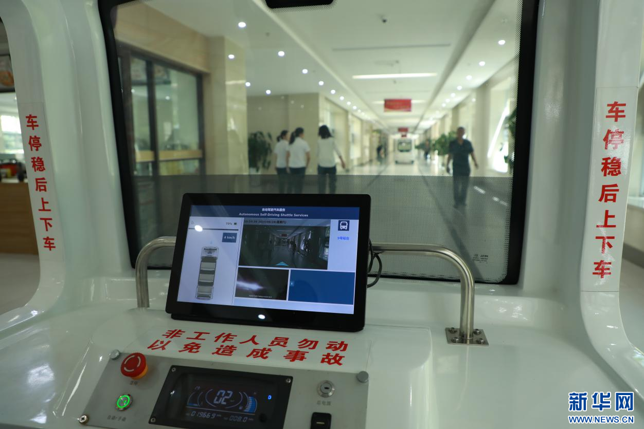 6月28日,在甘肃省武威肿瘤医院门诊部拍摄的无人驾驶通勤车。(林锦泉 摄)