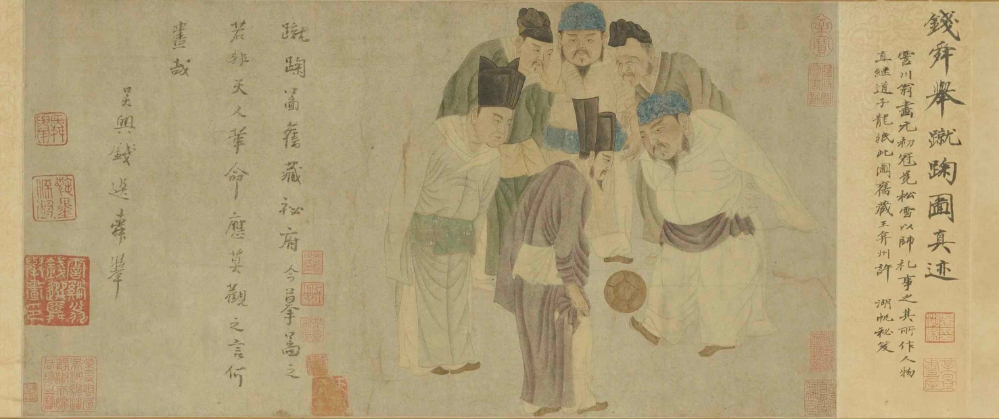 元代著名画家钱选临摹的《宋太祖蹴鞠图》(原画为北宋画师苏汉臣所绘)。(中国文化报)