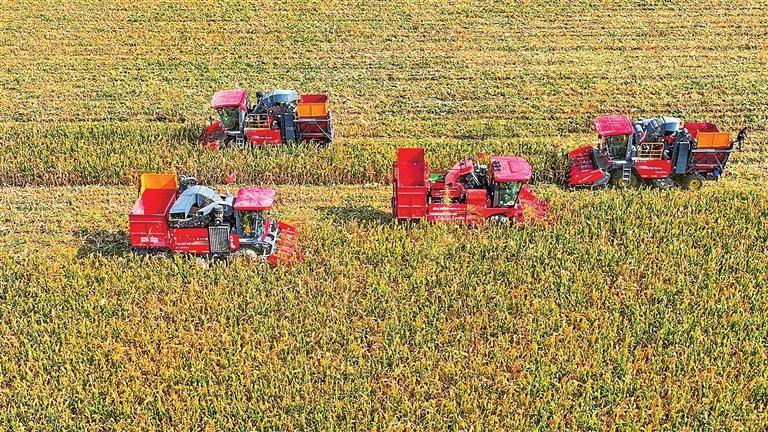 在甘州区碱滩镇普家庄村,18台自走式制种玉米收获机在千亩玉米制种基地集中“亮相开工”,所到之处,一根根秸秆被粉碎还田,完整的玉米棒被倒入运输车舱;收获的玉米纷纷“涌进”各种子加工企业,登海、华瑞恒祥、天宇等近百家种子加工企业开足马力生产加工玉米优质良种,为满足来年全国26个省市的春耕、春播生产需要做准备。