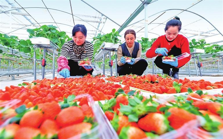 甘州区靖安乡现代高效农业产业示范园草莓种植区。王将