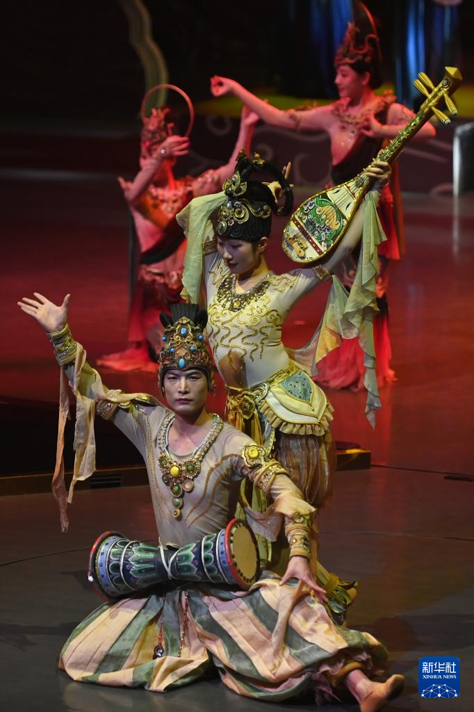 10月12日,演员在《乐动敦煌》中表演。新华社记者 范培珅 摄