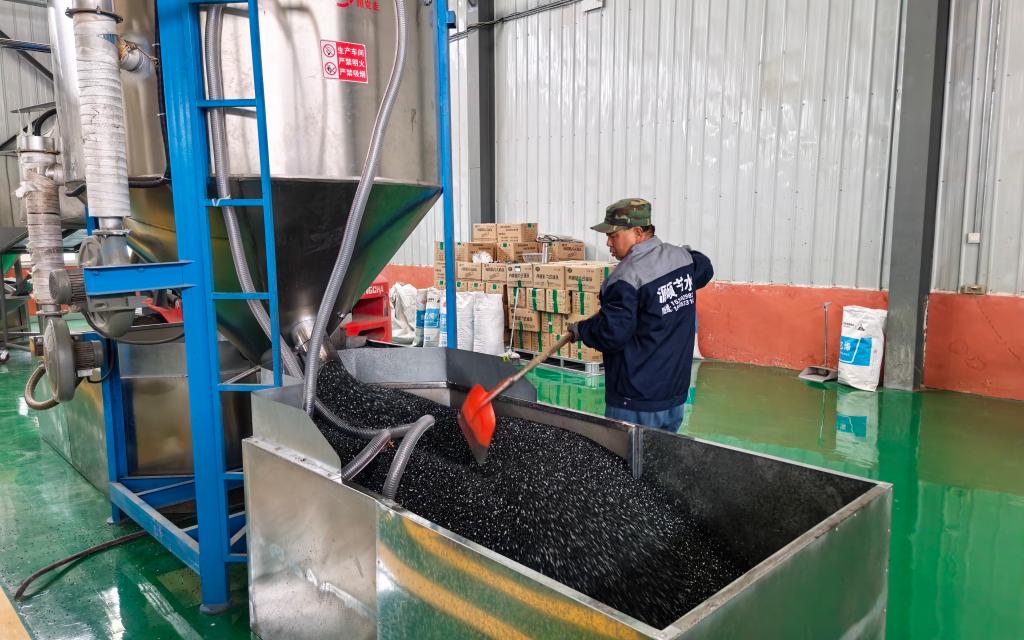 武威源硕节水发展有限公司工作人员正在处理物料。新华社记者李杰 摄