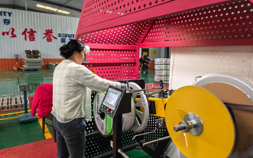 工作人员正在打包贴片式滴灌带。新华社记者李杰 摄