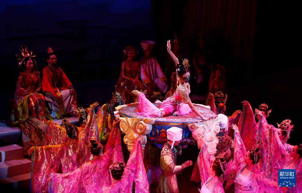 演员在美国纽约林肯剧院表演《大梦敦煌》片段(2020年1月9日摄)。新华社记者 王迎 摄