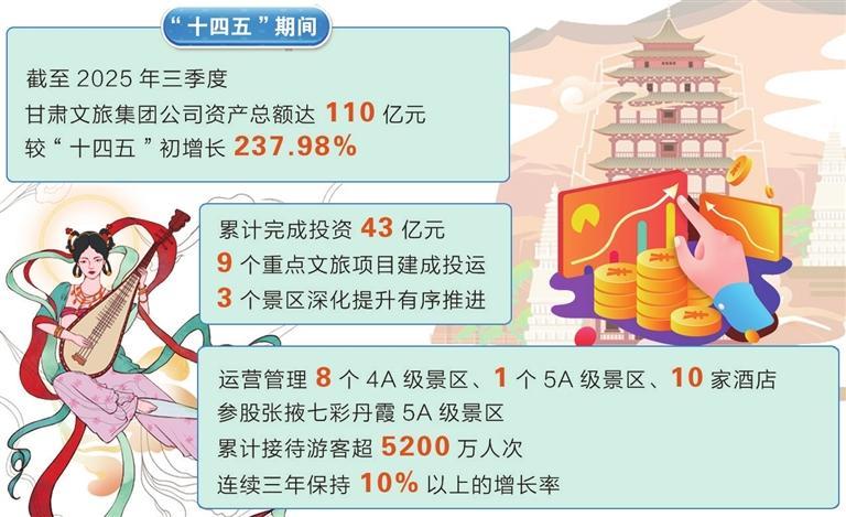 据介绍,“十四五”期间,甘肃文旅集团公司资产规模、营业收入、利润总额等核心经济指标大幅增长。截至2025年三季度,集团公司资产总额达110亿元,较“十四五”初增长237.98%。
