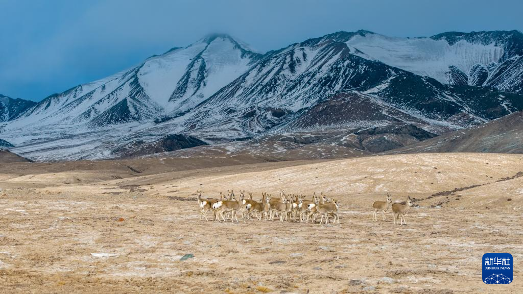 11月14日,国家二级保护野生动物藏原羚在甘肃省阿克塞县阿勒腾乡哈尔腾草原活动觅食。新华社记者 郎兵兵 摄