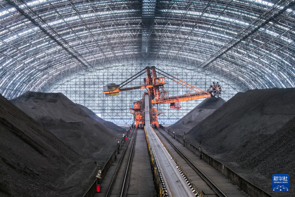 这是11月19日拍摄的甘肃电投常乐电厂煤棚内堆存的燃煤(无人机照片)。新华社记者 郎兵兵 摄