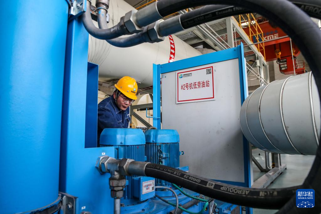 11月19日,工作人员在甘肃电投常乐电厂汽机主厂房内巡检。新华社记者 郎兵兵 摄