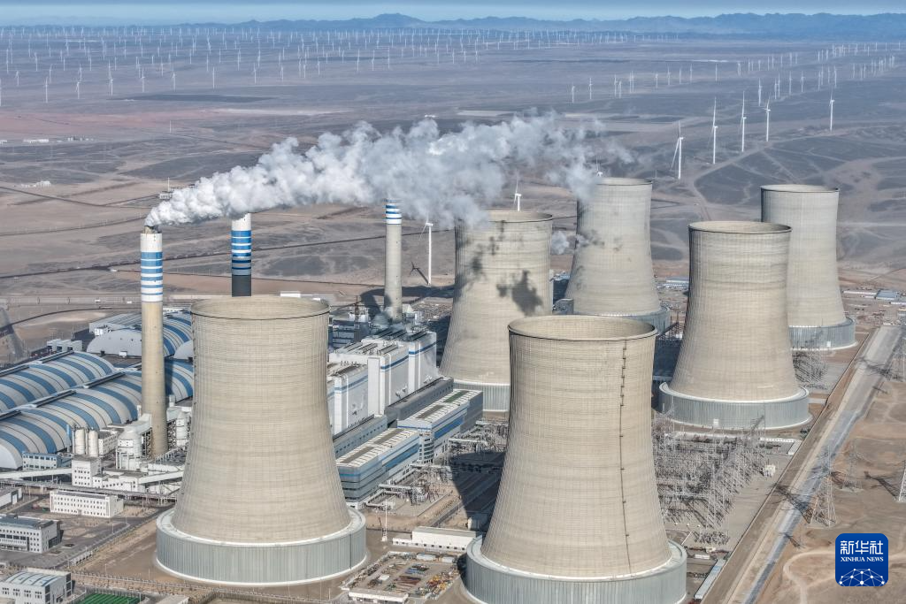 这是11月19日在甘肃省酒泉市瓜州县拍摄的甘肃电投常乐电厂外景(无人机照片)。新华社记者 郎兵兵 摄