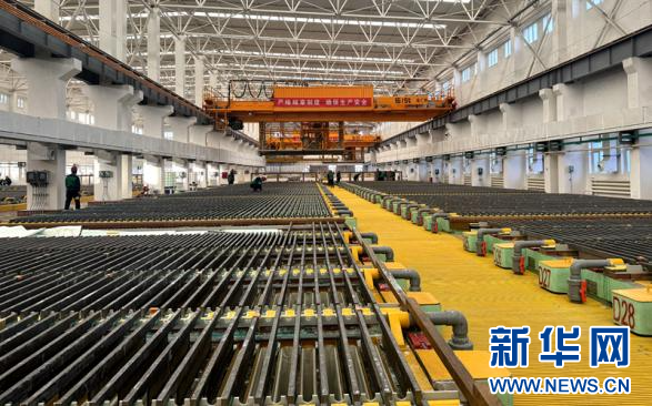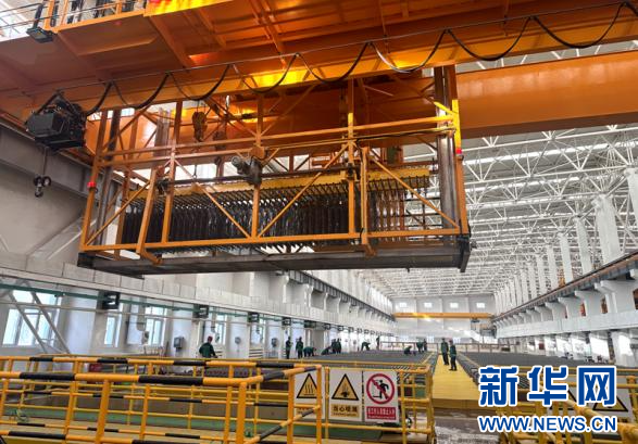 图为金川集团镍冶炼厂电积二车间电积镍产品生产现场。新华网(刘欣瑜 摄)