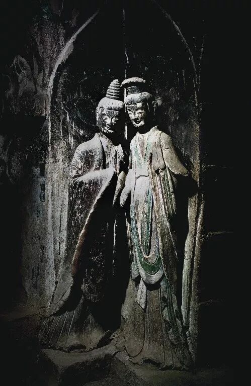麦积山石窟121窟菩萨与弟子(北魏),细眯着双眼,动人的微笑已“绽放”了千年;窃窃私语的神态成为了佛教艺术造像中最独特的风景,这就是麦积山121石窟造像“窃窃私语”。这组人物的脸部表情,丝毫没有传统佛教造像中庄严的氛围,形态生动、亲切。