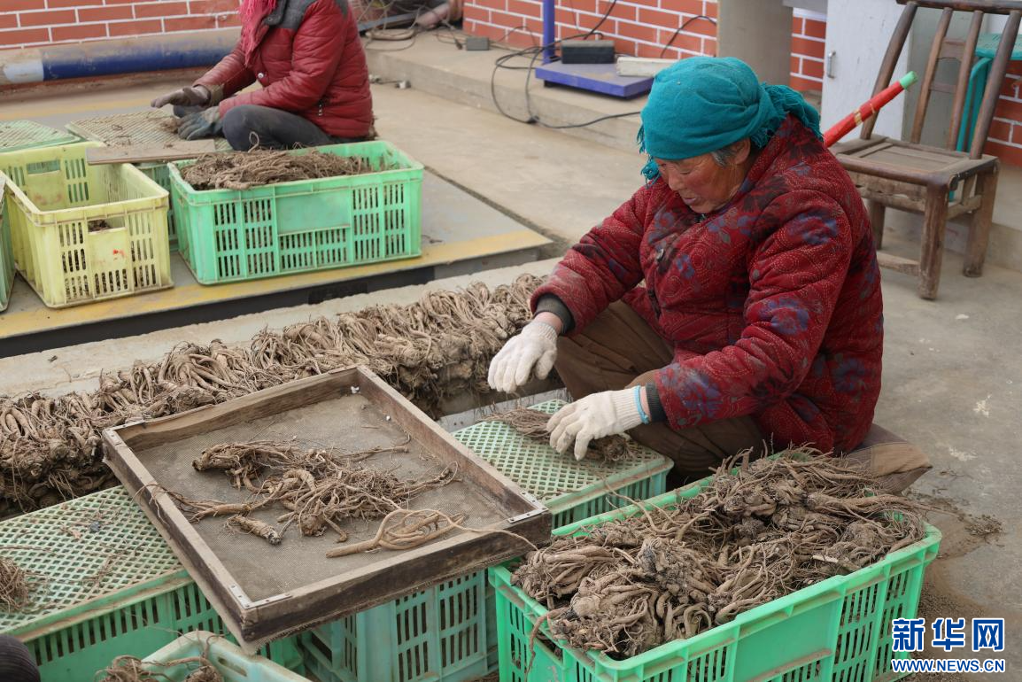 甘肃省榆中县马坡乡河湾村的村民正在分拣当归