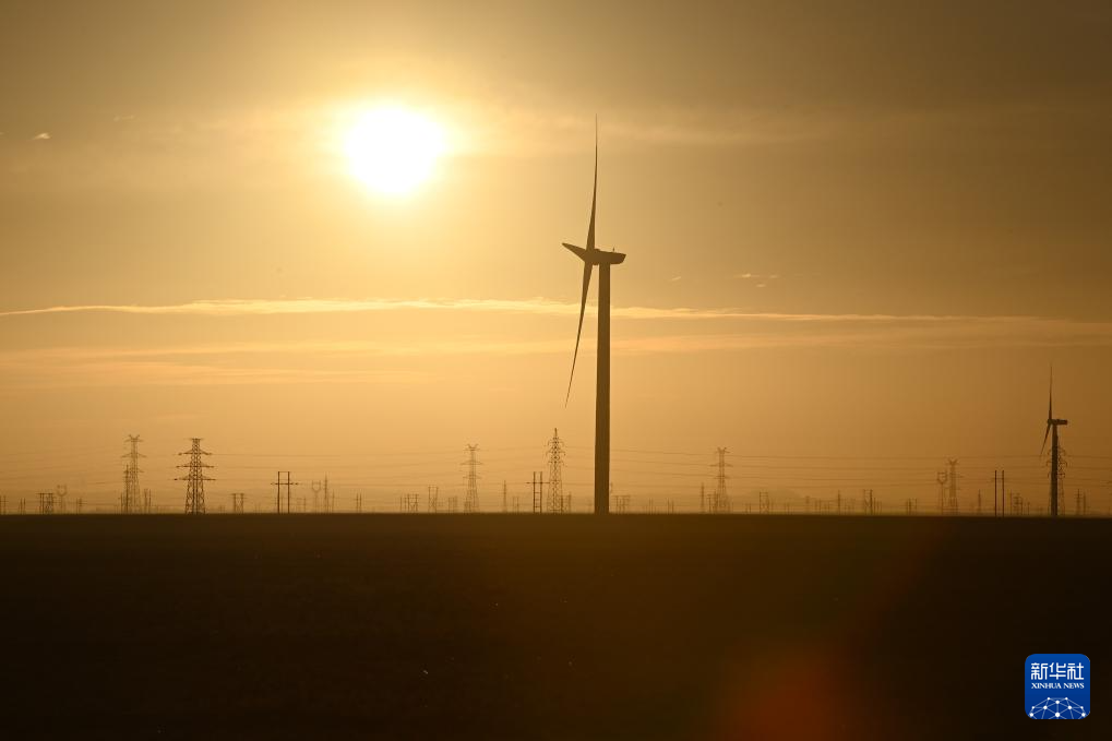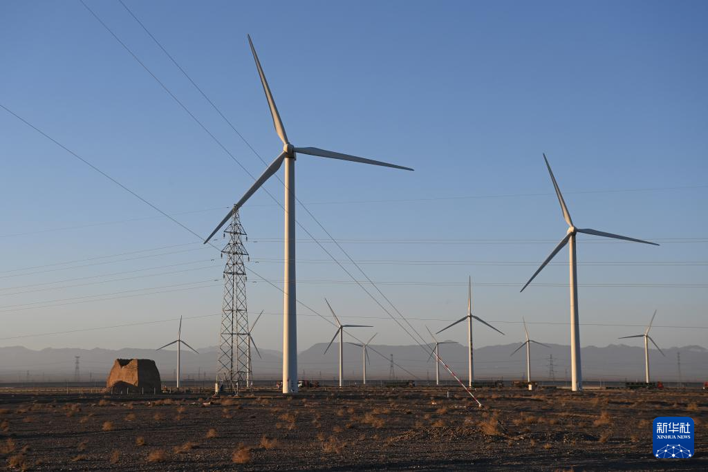 这是12月2日在甘肃省玉门市拍摄的戈壁滩上的风电机组。新华社记者 范培珅 摄