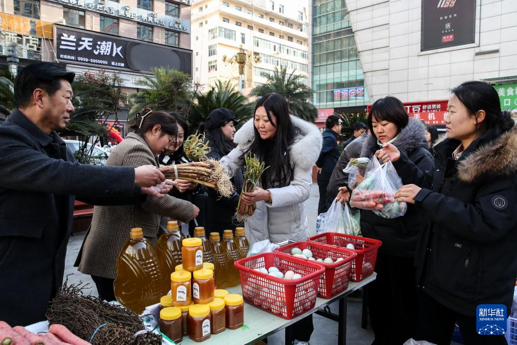 12月13日,居民在陇南市武都区“冬至大集”上选购特色农产品。新华社记者 郎兵兵 摄