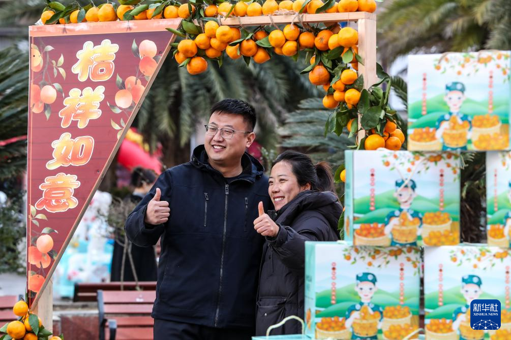 12月13日,居民在陇南市武都区“冬至大集”上拍照。新华社记者 郎兵兵 摄
