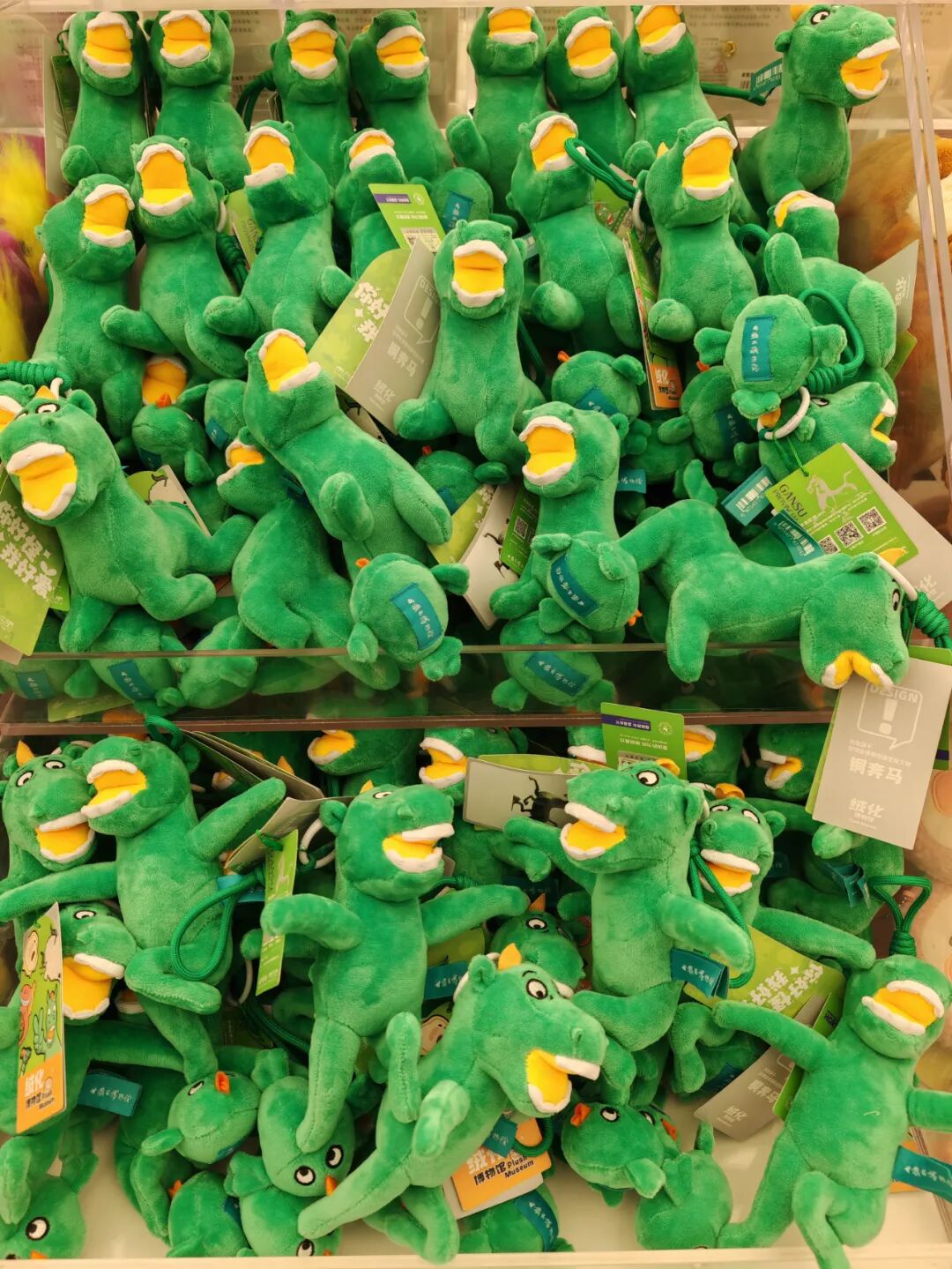 “绿马”玩偶创意源自国宝级文物铜奔马,以其标志性的奔跑姿态出圈。玩偶造型生动有趣,一改文物的厚重感,寓意“奔腾不息,一路平安”,成为备受欢迎的网红文创和趣味礼品。
