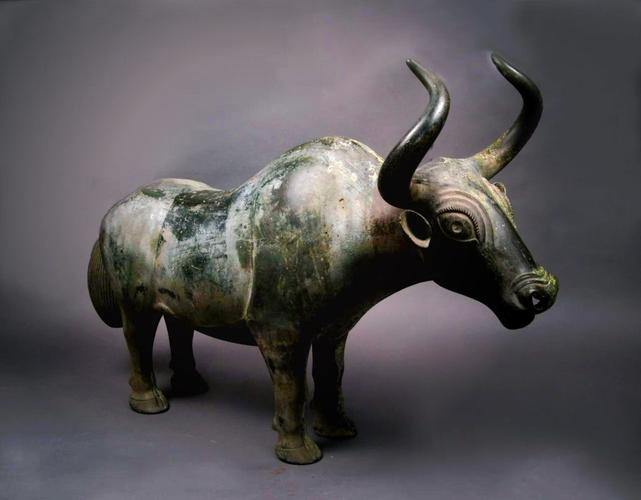 天祝青铜牦牛是由明代工匠铸造的大型青铜雕塑,出土于甘肃省天祝藏族自治县哈溪镇。牦牛作为高原民族的核心畜种,兼具运输、饮食及文化图腾功能。雕塑身长118厘米,重75公斤,呈静立姿态,双目圆睁,细节刻画兼具力量感与动态美。其铸造依托当地冶铜传统,祁连乡“禄述”部落的冶铜遗迹佐证了工艺渊源。