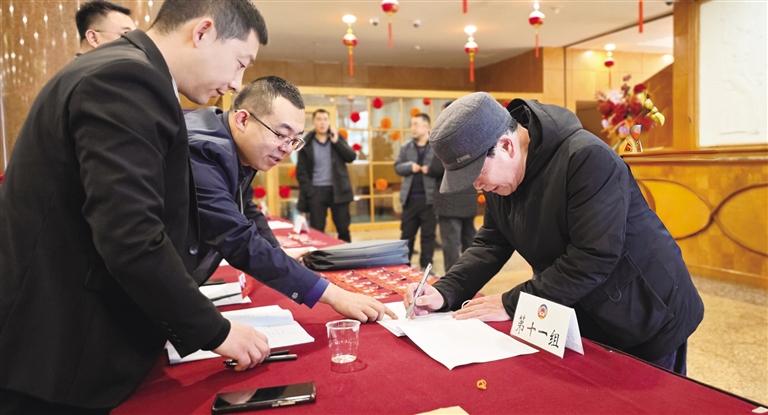 报到现场,委员们在工作人员的指引下,有条不紊地办理相关手续,整个流程高效有序。不少办完报到手续的委员认真翻阅会议资料,熟悉会议议程和相关安排,互相交流准备的提案,展现出高度的责任感与履职热情。