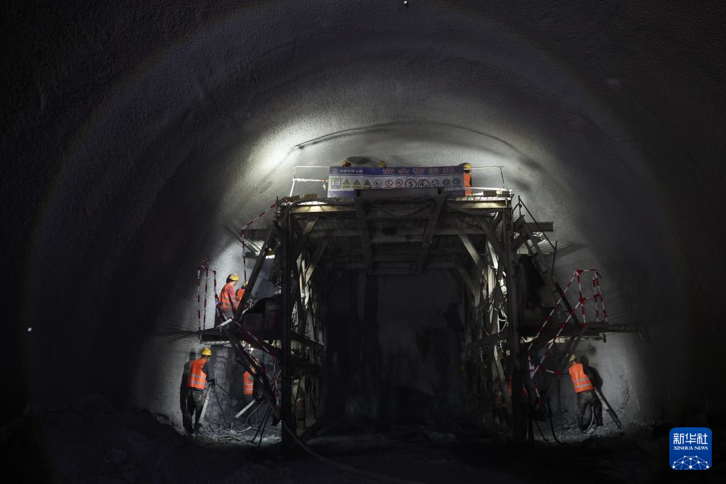 1月27日,建设者在兰合铁路西固隧道内施工。新华社记者 陈斌 摄