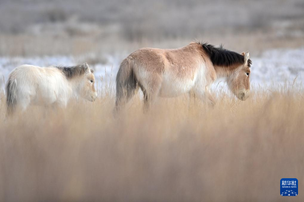 这是在甘肃敦煌西湖国家级自然保护区拍摄的普氏野马(2月5日摄)。新华社记者 陈斌 摄