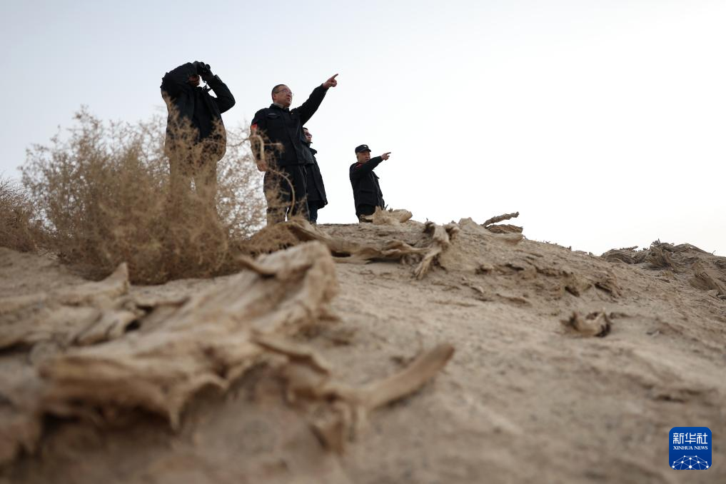 甘肃敦煌西湖国家级自然保护区管护中心玉门关保护站站长吴兴东在保护区内检查围栏(2月5日摄)。新华社记者 陈斌 摄