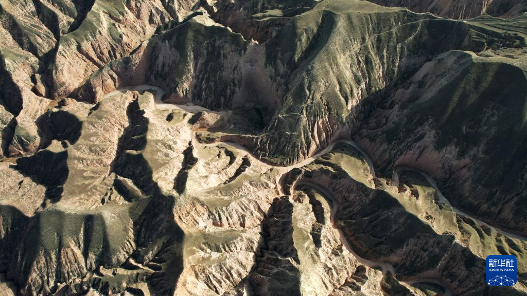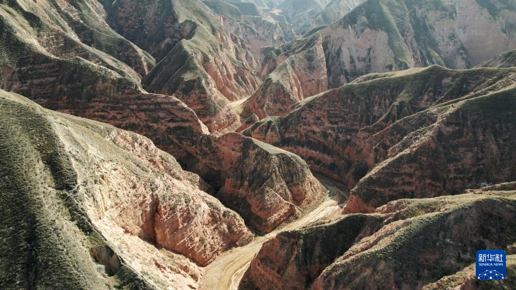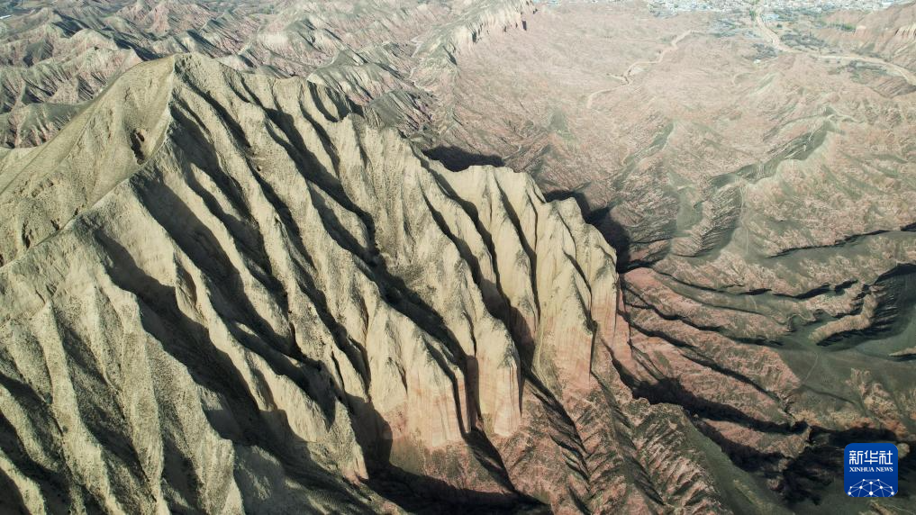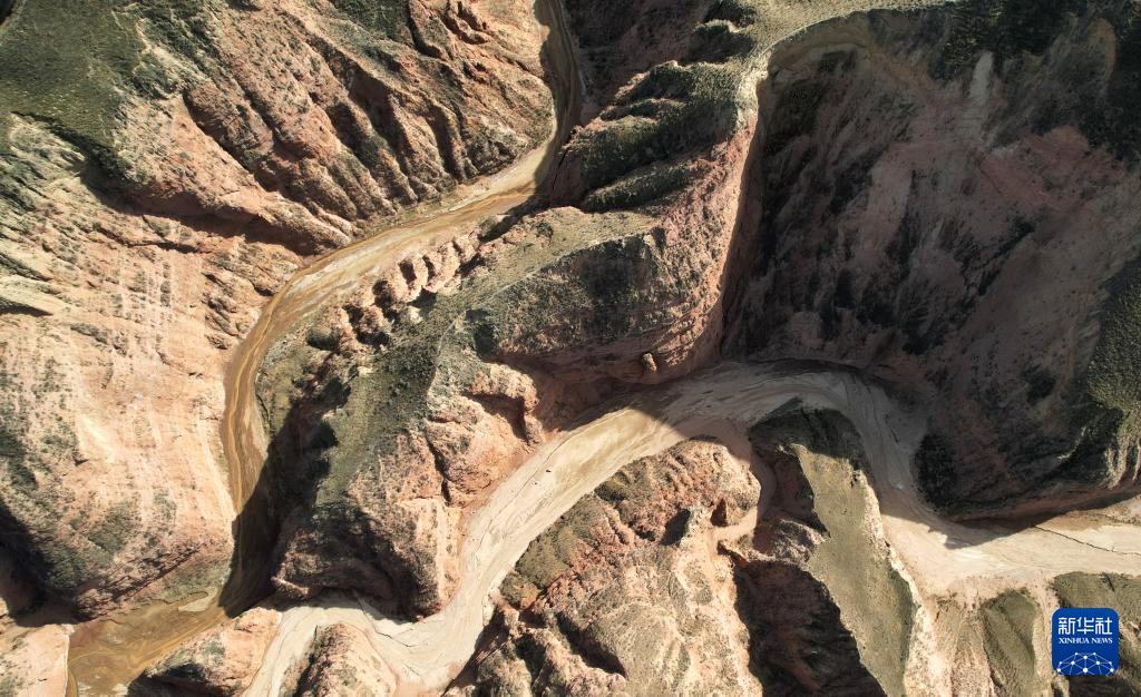 这是4月4日拍摄的石拉泉大峡谷丹霞地貌(无人机照片)。新华社记者 陈斌 摄