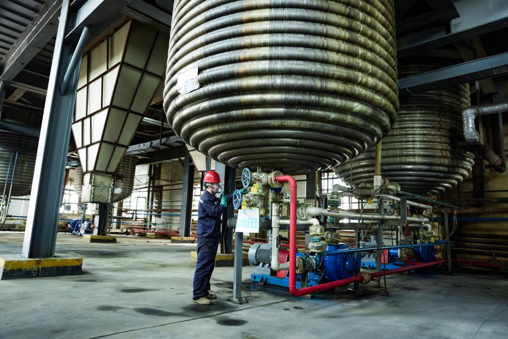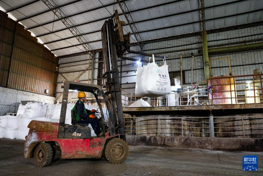 4月13日,在金昌神泥科技有限公司浸出车间,工作人员操作压滤机进行压滤作业。新华社记者 郎兵兵 摄